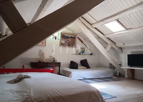 wo es zwei Schlafzimmer und eine Badewasser-Holztreppe und zum dekorierten Dachboden gibt