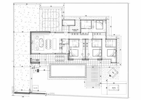 Es besteht aus einem offenen Raumkonzept, das Küche, Esszimmer und Wohnzimmer mit Zugang zu einer überdachten Terrasse mit Sommerküche, vier Schlafzimmern mit eigenem Bad, einem Gäste-WC, einer Waschküche und Technikräumen vereint.