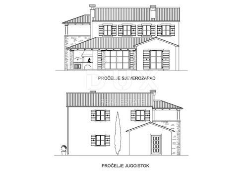In einem ruhigen, von Grün umgebenen istrischen Dorf bieten wir ein 841 m² großes Baugrundstück mit gültiger Baugenehmigung für den Bau einer luxuriösen rustikalen Villa an, die eine authentische mediterrane Atmosphäre mit modernem Komfort verbindet. Laut Projekt wird das zukünftige Gebäude über 193 m² Wohnfläche (netto), verteilt auf zwei Etagen, und einen zusätzlichen 38 m² großen Swimmingpool verfügen, ideal für das Familienleben oder als Investition in die touristische Vermietung. Der Grundriss des Hauses sieht folgendes vor: Erdgeschoss (123 m²) mit einem großzügigen Wohnzimmer, einer modern gestalteten Küche mit Essbereich, einem Eingangsbereich, einem Schlafzimmer mit eigenem Bad, einem zusätzlichen WC, einem Abstellraum/Waschküche, einem Technikraum und einer überdachten Terrasse. Obergeschoss (70 m²) mit zwei komfortablen Schlafzimmern, beide mit eigenem Bad, einem Eingangsbereich und einem gemeinsamen Ausgang zu einer überdachten Terrasse mit Blick in die Natur. Bei der Planung des Projekts wurde besonderer Wert auf Energieeffizienz gelegt und die Lage des Grundstücks ermöglicht ein ruhiges Leben in der Nähe aller wichtigen Annehmlichkeiten – Meer, Geschäfte, Schulen und Verkehrsanbindungen. Dieses Grundstück mit vollständiger Dokumentation und einem fertigen Projekt ermöglicht einen schnellen Baubeginn ohne zusätzliche Wartezeiten. Eine perfekte Gelegenheit für alle, die ihr Traumhaus bauen oder in eine Luxusimmobilie in einer begehrten Lage in Istrien investieren möchten. Für weitere Informationen und Projektdetails können Sie uns gerne kontaktieren.