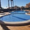 Bungalow auf zwei Ebenen mit zusätzlichem Solarium, Garten und privatem Pool im Eingangsbereich sowie einer Wohnanlage mit zwei Gemeinschaftspools. Komplett renoviert und bezugsfertig.~~Das Erdgeschoss, in dem sich der Zugang zum Haus befindet, verfügt über ein privates Grundstück mit Swimmingpool. Der Zugang erfolgt über einen vollständig geschlossenen und verglasten Eingangsbereich in ein großzügiges Wohn-Esszimmer, eine komplett renovierte Küche mit neuer Ausstattung (Ober- und Unterschränke, schwarze Marmorarbeitsplatte und Dunstabzugshaube aus Edelstahl) sowie ein komplettes Badezimmer.~~Im ersten Obergeschoss, das über eine Innentreppe erreichbar ist, befinden sich drei Schlafzimmer (das Hauptschlafzimmer mit Einbauschrank und Zugang zur Terrasse), ein komplettes Badezimmer und eine verglaste Terrasse mit Blick auf das Grundstück und den privaten Pool.~~Das zweite Obergeschoss bietet über eine Innentreppe ein vollständig offenes Solarium von 25 m2 sowie ein kleineres, geschlossenes und verglastes Turm-Solarium von 8 m2.~~Wohnanlage mit zwei Gemeinschaftspools.