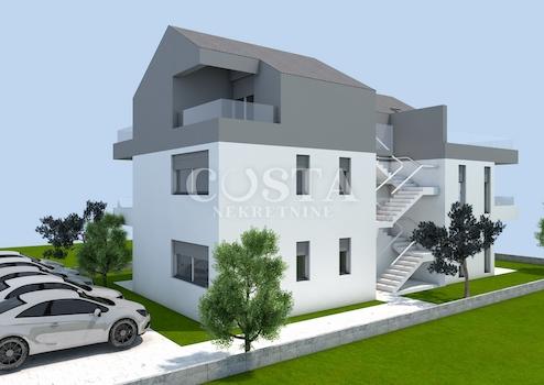 In Povljana auf der Insel Pag steht eine Zweizimmerwohnung in einem Neubau zum Verkauf. Die Wohnung mit einer Wohnfläche von 61,36 m² befindet sich im Erdgeschoss eines kleineren Wohnhauses mit nur fünf Wohneinheiten. Sie besteht aus einem Wohnzimmer, einer Wohnküche, zwei Schlafzimmern, einem Badezimmer, einem Abstellraum und einer überdachten Terrasse von zusätzlich 24 m². Zur Wohnung gehören außerdem ein 116,87 m² großer Garten und ein privater Parkplatz im Innenhof des Gebäudes. Die Gesamtnutzfläche der Wohnung inklusive Nebengebäude beträgt 214,74 m² (86,96 m² Nutzfläche).