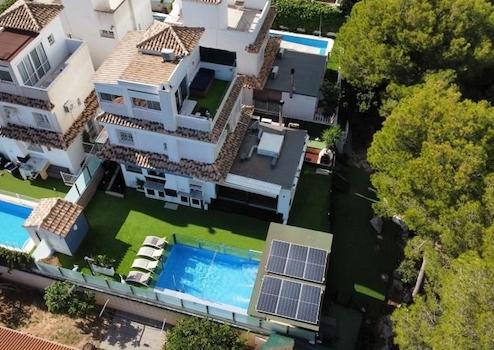 Wir präsentieren Ihnen diese spektakuläre freistehende Villa in der exklusiven und ruhigen Gegend von Lomas de Don Juan in Orihuela Costa. Eine einzigartige Immobilie, die mediterranen rustikalen Charme mit modernem und funktionalem Design verbindet, ideal für diejenigen, die Komfort, Privatsphäre und eine Umgebung voller Licht und Natur in Meeresnähe suchen.