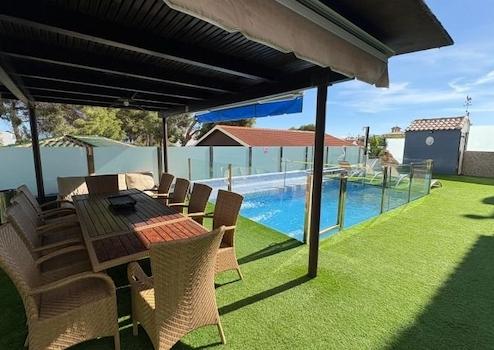 Im Außenbereich verfügt das Anwesen über einen privaten Pool, der von Terrassen umgeben ist, auf denen Sie die Sonne genießen und angenehme Momente im Freien verbringen können.