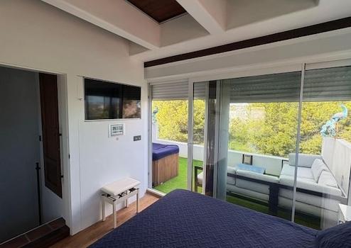 Im dritten Stock befindet sich die Master-Suite, ein intimer und gemütlicher Raum mit eigenem Bad und einer privaten Terrasse mit Whirlpool und freiem Blick, ideal zum Entspannen und Genießen des mediterranen Klimas.