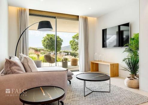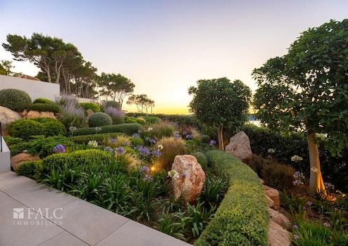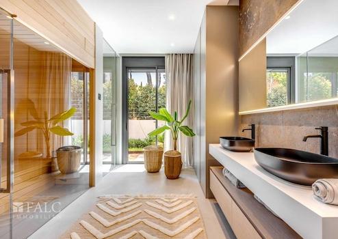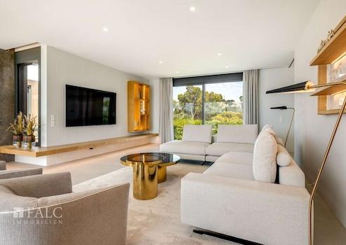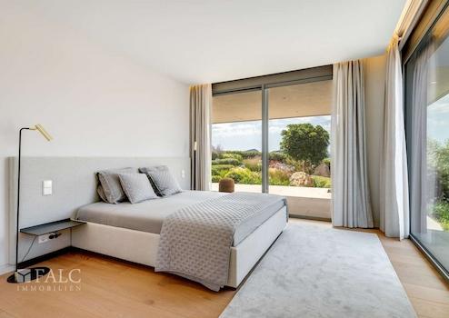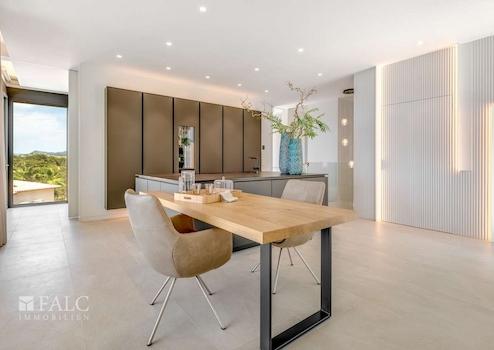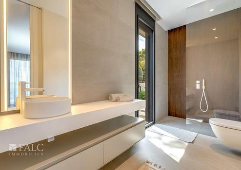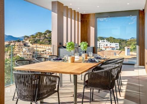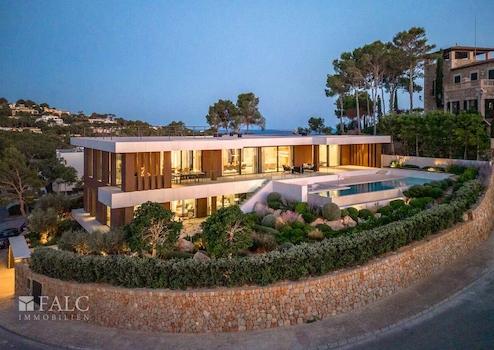 Diese luxuriöse Villa in Santa Ponsa bietet einen atemberaubenden Meerblick bei höchster Ausstattungsqualität. Das moderne Anwesen wurde im Jahr 2023 fertiggestellt und liegt in sehr ruhiger Wohnlage. Es erstreckt sich über drei Etagen und verfügt über 7 Zimmer, darunter 4 Schlafzimmer mit jeweiligem Badezimmer en suite. Die Qualität der Ausstattung ist luxuriös und hochwertig, mit edlen Böden aus Keramikfliesen, Designerküche, Gäste-WCs, Klimaanlage, Fussbodenheizung, Sauna und Kamin. Die Villa hat einen wunderschön angelegten Gartenbereich mit Terrassen, die jeweils nach Südwesten und Westen ausgerichtet sind, sowie eine Aussenküche mit Grillbereich, einen Pool und eine Garage für bis zu 4 Fahrzeuge (je nach Wagengrösse). Hinzu kommt eine grosse Dachterrasse mit einem spektakulären 360-Grad-Blick. Sie sind herzlich eingeladen, sich die Luxusvilla „Bella Vista“ anzusehen.