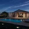 Das Nebengebäude ist 3 x 3 m groß und beherbergt den Pool-Maschinenraum und ist für die Unterbringung von Gartengeräten, Terrassen- und Poolgeräten vorgesehen.