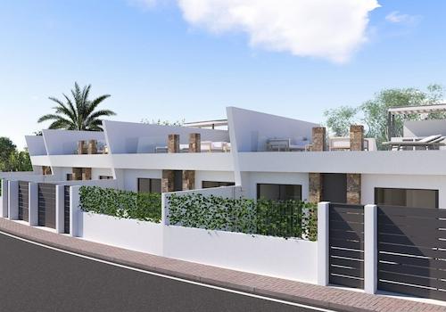 Moderne einstöckige Villen im Altaona Golf Resort Murcia~~Erstklassige Lage im Golf Resort in der Nähe der Stadt Murcia~Entdecken Sie diese exklusive Kollektion neu gebauter freistehender Villen im renommierten Altaona Golf Resort in Murcia. In einer sicheren und ruhigen Umgebung, umgeben von Natur und einem 18-Loch-Golfplatz, bietet diese Wohnanlage die perfekte Balance zwischen Ruhe und Erreichbarkeit. Altaona Golf liegt nur 15 km vom Stadtzentrum von Murcia entfernt, wo Sie Einkaufszentren, Restaurants, Schulen und medizinische Einrichtungen finden, während die Strände der Costa Calida nur 20 km entfernt sind. Der Flughafen Murcia Corvera liegt günstig 15 km vom Resort entfernt, was diesen Ort ideal sowohl für den dauerhaften Wohnsitz als auch für Ferienhäuser macht.~~Modernes einstöckiges Design mit privatem Garten und Pool~Diese eleganten Villen sind auf einer Ebene konzipiert, um maximalen Komfort und Funktionalität zu bieten. Käufer können zwischen 2, 3 oder 4 Schlafzimmern und 2 oder 3 Badezimmern sowie einer Gästetoilette wählen. Jedes Haus verfügt über eine offene Küche und einen Wohnbereich, der nahtlos in die Außenterrasse und den privaten Landschaftsgarten mit Swimmingpool übergeht. Ein privater Parkplatz ist im Grundstück enthalten und sorgt für Komfort und Privatsphäre.~~Energieeffiziente Häuser mit hochwertiger Ausstattung~Alle Villen verfügen über ein Energiezertifikat der Klasse A, das eine hervorragende Energieeffizienz und niedrige Betriebskosten gewährleistet. Die Immobilien sind mit einer Klimaanlage mit Wärmepumpe im gesamten Haus (außer in den Badezimmern) und einer elektrischen Fußbodenheizung im Wohnzimmer und in den Badezimmern mit unabhängigen Thermostaten für jeden Bereich ausgestattet. Ein mechanisches Belüftungssystem sorgt für frische Luft in Küche, Badezimmern, Waschküche und Gästetoilette und verbessert so den Komfort im Innenbereich.~~Die Küche ist mit einer Dunstabzugshaube und einem elektrischen Induktionskochfeld ausgestattet. LED-Beleuchtung ist im Wohnzimmer, im Flur und in den Außenbereichen vorhanden, während die übrigen Räume für eine individuelle Beleuchtung durch den Eigentümer vorbereitet sind. Die Schlafzimmer sind mit USB-Ladestationen für zusätzlichen Komfort ausgestattet.~~Smart-Home-Technologie und sichere Wohnanlage~Jede Villa verfügt über eine Video-Gegensprechanlage, eine Smart-Home-Automatisierung mit zwei intelligenten Schaltern und einen motorisierten Zugang zur bewachten Wohnanlage. Der private Garten ist mit einem Tropfbewässerungssystem und einem einladenden privaten Swimmingpool ausgestattet, ideal, um das ganze Jahr über das mediterrane Klima zu genießen.~~Entfernungen zu wichtigen Sehenswürdigkeiten~Golfplatz Altaona 0,1 km~Stadtzentrum von Murcia 15 km~Strände von Los Alcazares und Mar Menor 20 km~Flughafen Murcia Corvera 15 km~Einkaufszentren und Dienstleistungen 10 km~Hacienda Riquelme Golf Resort 12 km~~Ihr neuer Lebensstil in Altaona Golf erwartet Sie~Genießen Sie Golf, Natur, Sicherheit und modernen Komfort in einem der attraktivsten Resorts der Region Murcia. Kontaktieren Sie uns noch heute, um weitere Informationen zu erhalten oder einen Besichtigungstermin für diese wunderschönen Neubauvillen zu vereinbaren.