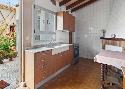 Dieses sonnige Reihenhaus im mallorquinischen Stil in Sa Rápita bietet Meerblick und liegt in einer ruhigen Wohngegend direkt am Meer, im Südosten der hübschen Insel Mallorca. Die attraktive, südlich ausgerichtete Immobilie ist renovierungsbedürftig und verfügt über eine bebaute Fläche von ca. 164 m2, die sich auf einer Etage wie folgt verteilen: ein geräumiges Wohnzimmer mit Kamin, eine Küche mit Zugang zum Innenhof, 3 Schlafzimmer, 2 Badezimmer, ein Hauswirtschaftsraum, sowie ein Abstellraum. Im Aussenbereich gibt es eine überdachte Terrasse mit Meerblick. Zu den Ausstattungsmerkmalen dieses attraktiven Reihenhauses in Sa Rápita zählen: Vorinstallation für Heizung, hohe Decken, sichtbare Holzdeckenbalken, ein Kamin und Fliesenböden. Zur Verfügung steht eine Garage. Es besteht die Möglichkeit, die erste Etage und eine Dachterrasse zu bauen. Es handelt sich um eine sehr attraktive Lage, nur wenige Schritte vom Meer und nur wenige Autominuten vom nächsten tollen Strand mit kristallklarem Wasser entfernt.