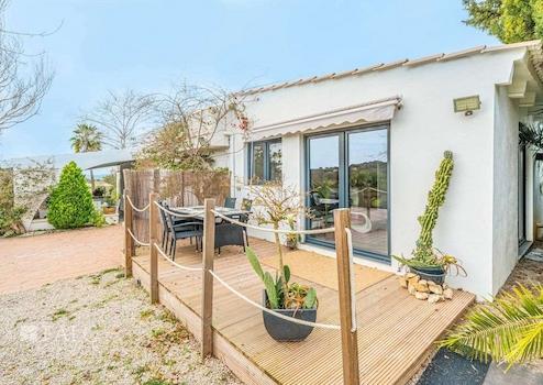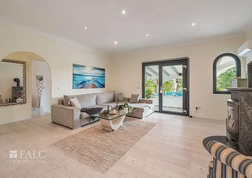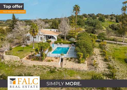 Diese beeindruckende Finca in Sineu befindet sich im Herzen Mallorcas, in einer geschätzten natürlichen Umgebung mit herrlichem Panoramablick auf die Insel. Das sonnige Objekt im ibizenkischen Stil und mit hochwertigen Materialien nach deutschem Standard renoviert, verfügt über ein weitläufiges Grundstück von 15.046 m2 mit einem erfrischenden Swimmingpool, ausgedehnten Gärten, Obstbäumen wie Orangen, Zitronen, Feigen, Mandeln, Kaki, Grapefruit und einer herrlichen Veranda. Das ebenerdige Haus bietet eine grosszügige Raumaufteilung und ist dank der grossen doppelt verglasten Fenster sehr hell. Es verfügt über eine Wohnfläche von ca. 290 m2, die sich auf ein wunderschönes Wohnzimmer mit Holzkamin und ein schönes offenes Büro, eine integrierte Küche mit Haushaltsgeräten, die offen zum Esszimmer mit Ausgang in den herrlichen Garten ist, 3 Doppelschlafzimmer mit Einbauschränken und 3 komplett ausgestattete Bäder, eines davon en-suite, verteilt. Darüber hinaus gibt es eine unabhängiges Gästeapartment mit einem Doppelschlafzimmer, Badezimmer, offener Küche und Wohnzimmer mit Zugang zu einer schönen Veranda mit Blick auf den Garten. Weitere Ausstattungsmerkmale: Fussbodenheizung, Klimaanlage, Garage, Abstellraum, automatische Bewässerung, Tiefbrunnen von 185 m, automatisches Schliesssystem / Videoüberwachung, Trinkwasseraufbereitung auf dem gesamten Grundstück. Zusätzlich gibt es ein an die Finca angeschlossenes Land von ca. 1300 m2 im selben Grundbucheintrag.