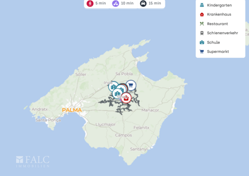Eine Lage, die den Charme des mallorquinischen Inselinneren mit praktischen Wegen im Alltag verbindet. Nahversorgung, Gastronomie, Grünflächen und eine sehr gute ÖPNV Anbindung liegen in der Nähe und machen Sineu zu einem stimmigen Standort für dauerhaftes Wohnen oder als Rückzugsort auf Mallorca.