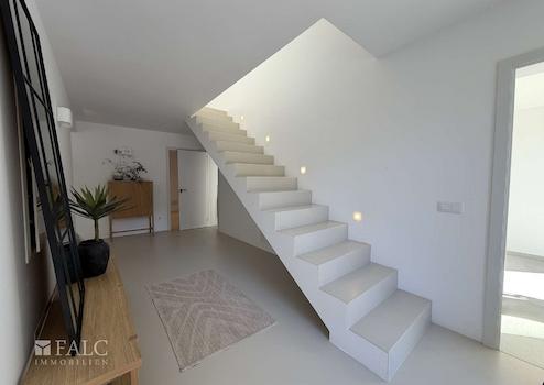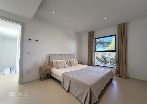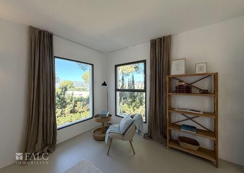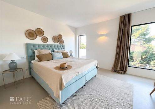 Das sonnige Grundstück mit ca. 1.020 m² bietet viel Privatsphäre und lädt mit seinem privaten Pool und den großzügigen Terrassenflächen zum Entspannen ein. Aus dem Obergeschoss genießt man einen herrlichen Meer- und Bergblick, der das mediterrane Lebensgefühl perfekt abrundet. Große Fensterfronten sorgen für lichtdurchflutete Räume und schaffen eine harmonische Verbindung zwischen Innen- und Außenbereich.