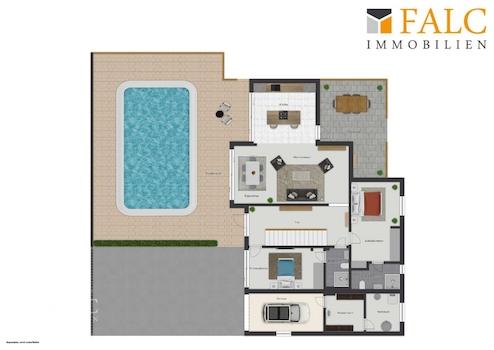 Die Villa ist teilmöbliert, verfügt über eine moderne Einbauküche sowie über neueste Haustechnik, die ganzjährig höchsten Wohnkomfort garantiert. Eine Garage sowie funktionale Nebenräume wie der Hauswirtschaftsraum runden dieses Angebot ab.