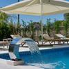 Im Garten gibt es einen Swimmingpool mit Wasserfall, eine Liegewiese und eine Sommerküche.