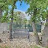 Im Hof gibt es einen Swimmingpool mit Liegewiese, der komplett umzäunt ist.