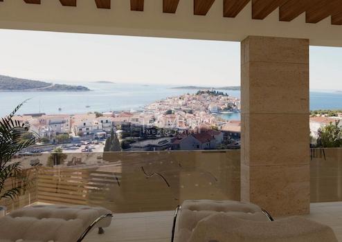Primošten, luxuriös eingerichtete Wohnung 132,25 m² mit Garage, Parkplatz, Pool, Panoramablick auf das Meer.