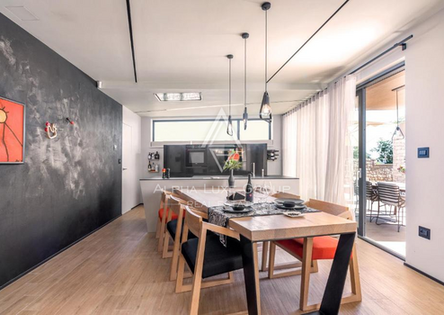 In einer ruhigen Siedlung nahe Umag gelegen, bietet diese moderne Designerresidenz einen außergewöhnlichen Wohnstandard, kombiniert mit hochwertigen Annehmlichkeiten und einem eleganten architektonischen Stil. Die Immobilie wurde sorgfältig geplant und nach höchsten Wohnbaustandards errichtet, wobei moderne Linienführung, hochwertige Materialien und durchdacht gestaltete Innen und Außenbereiche im Mittelpunkt stehen. Das Haus ist als eine einzige Wohneinheit konzipiert, die sich über zwei Etagen erstreckt und ganzjährig Komfort, Eleganz und Funktionalität bietet.
