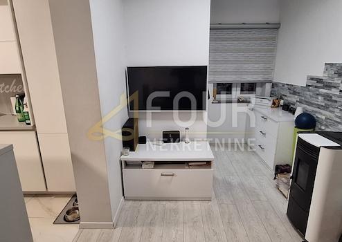 Zum Verkauf steht ein interessantes und funktionales Reihenhaus in Krimeja, das sich in einer sehr guten Lage am Anfang der Straße Tihovac befindet. Die Immobilie ist als zweistöckige Zweizimmerwohnung mit Wohnzimmer konzipiert, insgesamt 82 m2 groß, mit einem zusätzlichen Balkon, einem Keller von 11 m2 und einem kleinen Grundstück mit Garten, das die Möglichkeit bietet, sich im Freien aufzuhalten. Im Erdgeschoss befinden sich die Küche, verbunden mit dem Wohnzimmer, und das Badezimmer, während im Obergeschoss zwei Schlafzimmer und ein weiteres Badezimmer untergebracht sind. Beide Badezimmer sind komplett renoviert, ebenso wie die Strom- und Wasserinstallationen im Haus. Im unteren Stockwerk wurde Fußbodenheizung installiert, und das Heizen erfolgt zusätzlich über ein Pelletsystem. Es gibt PVC-Fenster, das mediterrane Dach und die Fassade befinden sich in ausgezeichnetem Zustand. Es handelt sich um eine spezifische, aber sehr interessante Immobilie, die alle Vorteile eines funktionalen und gut gepflegten Raums bietet. Sehr geehrte Kunden, die Maklerprovision wird gemäß den Allgemeinen Geschäftsbedingungen erhoben.
