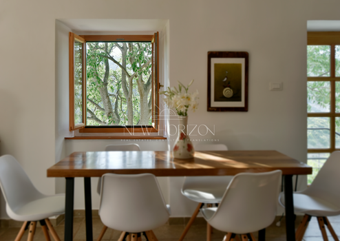 Situated on a gentle hill, secluded, yet only a five-minute walk from the center of the picturesque village and two excellent, traditional taverns, the villa perfectly combines isolation and practicality.