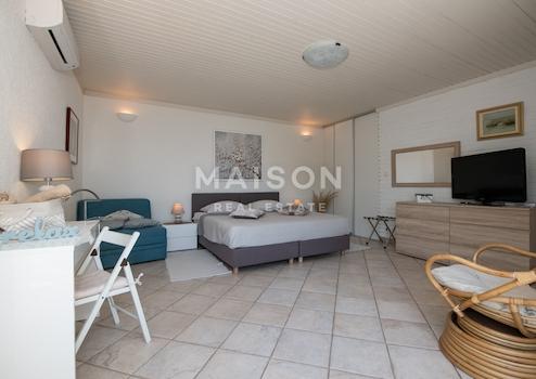 Die Wohnung befindet sich im ersten Stock eines Hauses und verfügt über eine großzügige und funktionale Raumaufteilung. Sie besteht aus drei Schlafzimmern, von denen zwei größer sind, drei Badezimmern, einer großen Küche mit Abstellraum sowie zwei Balkonen und einer Veranda. Ein besonderes Highlight ist der Balkon mit Zugang vom Wohnzimmer, der einen herrlichen, offenen Meerblick bietet. Der zweite Balkon liegt auf der Südseite der Küche, während der nördliche Ausgang der Küche auf eine überdachte Veranda führt, die sich ideal für den Aufenthalt im Freien eignet. Die Wohnung ist mit Klimaanlagen im Wohnzimmer und in einem Schlafzimmer ausgestattet und überzeugt durch ihren attraktiven Meerblick und die gut gestalteten Außenbereiche.