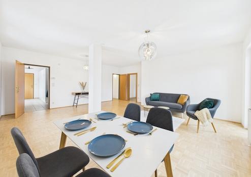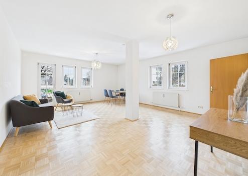 Die Wohnung bietet mit rund 156 m² Wohnfläche außergewöhnlich viel Platz und wurde aktuell in zwei eigenständig nutzbare Wohneinheiten unterteilt.