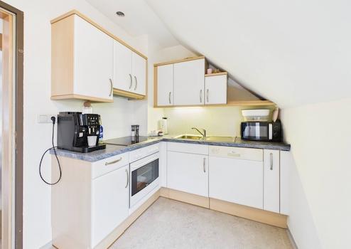 Die zweite, kompaktere Einheit mit einer Größe von ca. 62 m² verfügt über einen offenen Wohn-Ess- und Schlafbereich mit Küche und Badezimmer und ist derzeit vermietet. Die vorhandene Küche verbleibt in dieser Einheit.