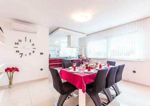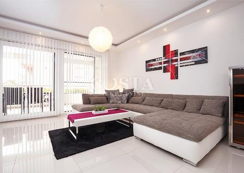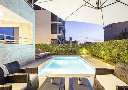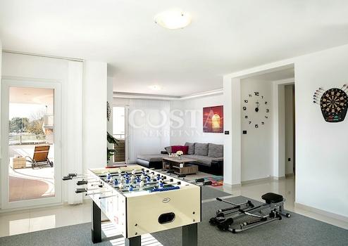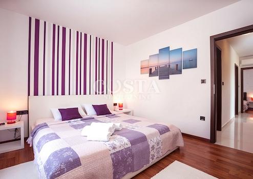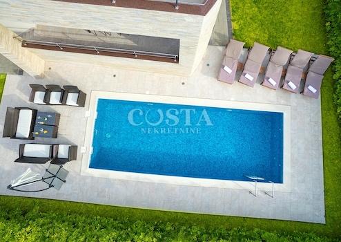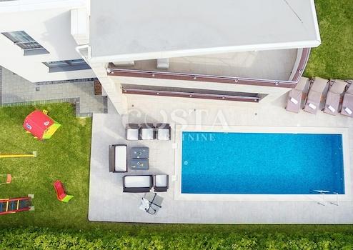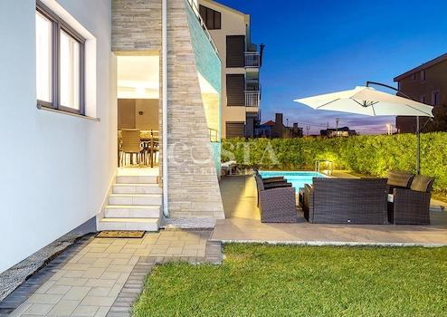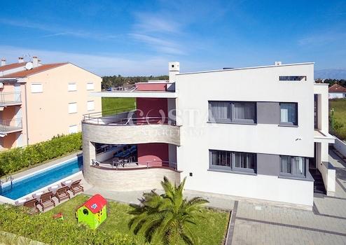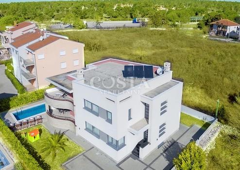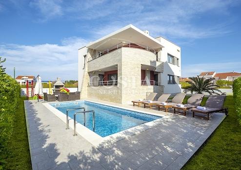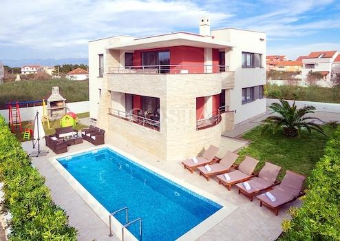 In Zaton bei Zadar steht eine großzügige Luxusvilla mit Pool zum Verkauf. Das 300 m² große Gebäude befindet sich auf einem 798 m² großen Grundstück und besteht aus Keller, Erdgeschoss und Obergeschoss. Im Keller befinden sich Waschküche, Heizungsraum und Badezimmer. Das Erdgeschoss bietet ein geräumiges Wohnzimmer, eine Küche mit Essbereich, drei Schlafzimmer, zwei Badezimmer und eine Terrasse. Im Obergeschoss befinden sich drei Schlafzimmer, zwei Badezimmer, ein Wohnzimmer, ein Spielzimmer und eine Terrasse mit Meerblick. Im weitläufigen Innenhof der Villa befinden sich ein beheizter Pool, ein Grillplatz, ein Garten, ein Kinderspielplatz und ein privater Parkplatz.