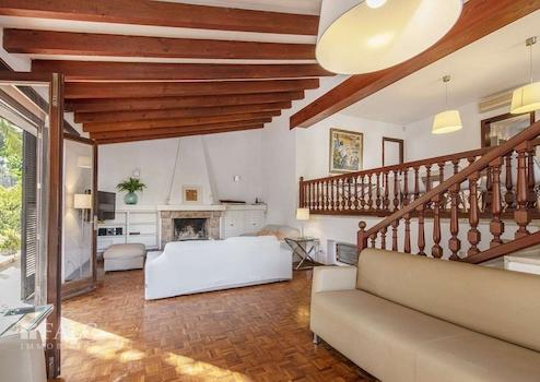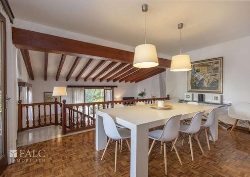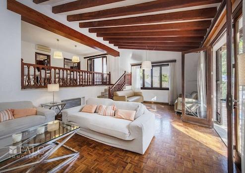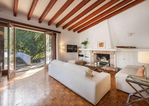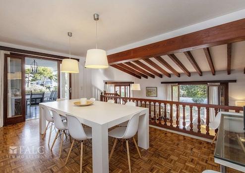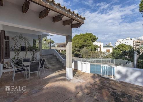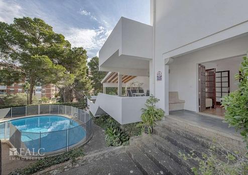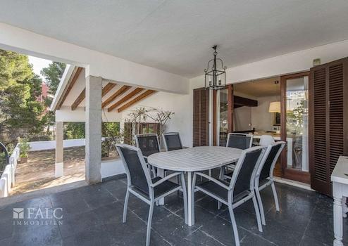 Diese schöne Villa in Son Veri Nou mit Pool liegt nur wenige Schritte vom Meer und dem Club Nautic s'Arenal entfernt. Die sonnige Immobilie mit mehreren Terrassen verfügt über eine Grundstücksfläche von ca. 960 m2 und eine bebaute Fläche von ca. 390 m2, verteilt auf 2 Etagen wie folgt: offener Wohn/-Essbereich im Split Level mit Kamin und Zugang auf je eine Terrasse und in den Garten mit Pool, eine voll ausgestattete Küche, 4 geräumige Schlafzimmer und 3 Badezimmer. Darüber hinaus, verfügt das Haus über einen Abstellraum, eine Waschküche, sowie eine separate Toilette. Im Außenbereich befindet sich ein wunderschöner Privatpool, wo Sie die sonnigen Tage auf Mallorca genießen können. Eine Garage und 3 Aussenstellplätze bieten ausreichend Parkmöglichkeiten. Dieses attraktive Haus in Son Veri Nou ist mit Klimaanlage, Heizung, doppelt verglasten Fenstern, Fliesenboden und Parkett ausgestattet.