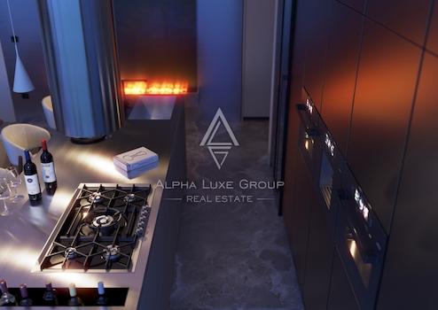 Die Immobilie nimmt die gesamte oberste Etage eines modernen Gebäudes mit nur fünf Wohnungen ein und bietet etwa 138 m2 sorgfältig gestaltete Wohnfläche. Mittelpunkt des Zuhauses ist ein großzügiger offener Wohnbereich von nahezu 56 m2, in dem Wohnzimmer, Küche und Essbereich harmonisch miteinander verbunden sind, von natürlichem Licht durchflutet werden und direkten Bezug zu den Außenterrassen schaffen.