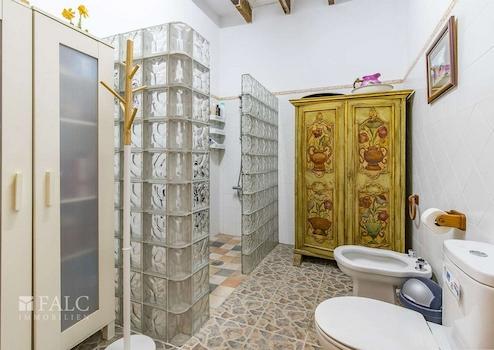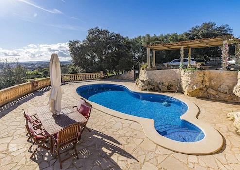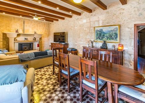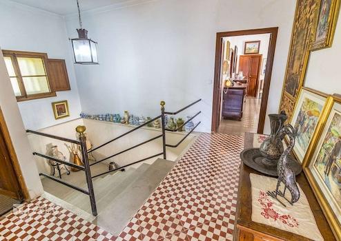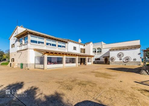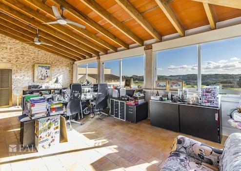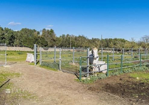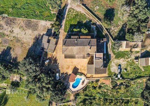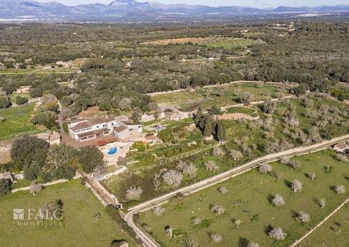 Umgeben von üppiger Vegetation und mit Lizenz für landwirtschaftliche Aktivitäten, präsentieren wir diese einzigartige und weitläufige Finca zwischen Sineu und Lloret de Vistalegre. Das authentische mallorquinische Landgut ist sehr gepflegt und liegt auf einem beeindruckenden, abgelegenen Grundstück von ca. 49.984 m2 mit Pool und zahlreichen Agrarmöglichkeiten. Das prächtige Anwesen verfügt über eine bebaute Fläche von ca. 899 m2, die sich auf ein Haupthaus, mehrere Sonnenterrassen, Ställe und weitere Nutzgebäude aufteilt. Das nach Süden ausgerichtete Wohngebäude verteilt sich auf 2 Etagen und bietet insgesamt 7 Doppelschlafzimmer mit 6 Bädern en suite, wie folgt: Das geräumige Erdgeschoss bietet eine grosse und helle Eingangshalle mit Haupttreppe, ein Wohn-/Esszimmer von ca. 48 m2 mit Pelletkamin, eine grosse Küche von ca. 20 m2, ausgestattet mit Elektrogeräten, grosse Speisekammer und Weinkeller, eine Gästetoilette, eine wunderbare Bücherei von ca. 55 m2, ein Schlafzimmer, 2 Bäder, eines davon en suite und ein zusätzliches Wohnzimmer mit Zugang zur Terrasse. Im Obergeschoss befinden sich 6 Doppelschlafzimmer, 5 davon mit eigenem Bad, ein Büro von ca. 45 m2 mit herrlichem Blick und ein weiteres Wohnzimmer. Darüber hinaus gibt es Bäder, WCs und Umkleideräume im Freien, ein Salzwasserpool, einen Holzofen, 2 Venenbrunnen, einen Reitplatz und Stallungen.