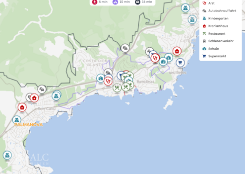 Für Freizeit und Erholung profitieren Sie von der Nähe zu den Küstenorten Palmanova und Magaluf sowie zu weiteren Stränden und Promenaden im Südwesten. Auch Golfmöglichkeiten befinden sich in der weiteren Umgebung, wodurch sich ein abwechslungsreicher Mix aus Alltagstauglichkeit und Freizeitwert ergibt.