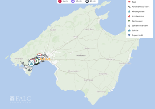 Der Flughafen Palma de Mallorca ist ebenfalls gut erreichbar, was die Lage auch für Zweitwohnsitz oder regelmäßige Aufenthalte besonders komfortabel macht.