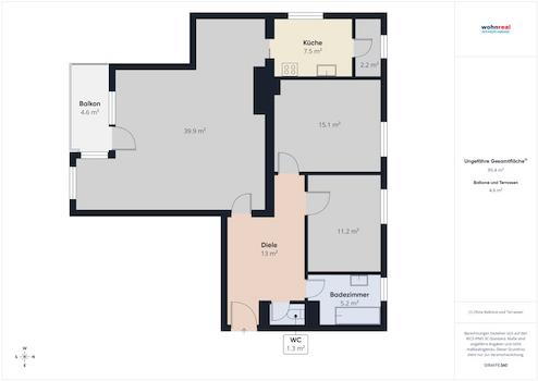 Mit einer Wohnfläche von rund 95 m² sowie einer zusätzlichen Loggia mit ca. 5 m² bietet sie ein angenehmes und komfortables Wohngefühl.