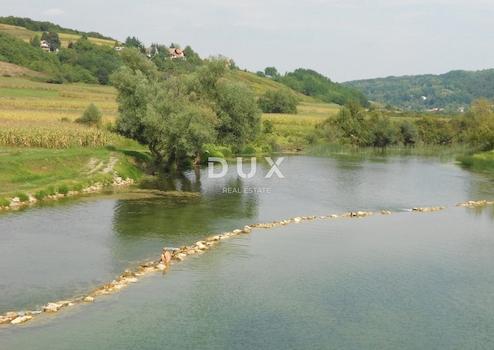 Zum Verkauf gehört auch die Hälfte des angrenzenden Grundstücks am Fluss Korana mit einer Gesamtfläche von 1.903 m² (851,5 m² Eigentumsfläche). Hier befinden sich weitere Parkplätze, ein Spielplatz, ein Strandhaus, ein Privatstrand mit Floß und Steg. Diese Immobilie ist eine seltene Gelegenheit auf dem Markt.