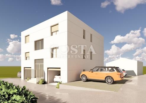 Eine moderne, im Bau befindliche Wohnung in Diklo, Zadar, steht zum Verkauf. Die 52,50 m² große Wohnung befindet sich im ersten Obergeschoss eines kleineren Wohngebäudes mit fünf Wohneinheiten. Sie besteht aus zwei Schlafzimmern, einer Wohnküche, einem Badezimmer, einem Abstellraum und einem Flur. Die Wohnung ist klimatisiert, und im Badezimmer ist eine Fußbodenheizung installiert. Zur Wohnung gehört außerdem eine 7,53 m² große Loggia sowie zwei Stellplätze im Innenhof des Gebäudes. Die Gesamtnutzfläche der Wohnung inklusive Nebenräume beträgt 87,53 m² (KV 63,65 m²).