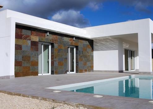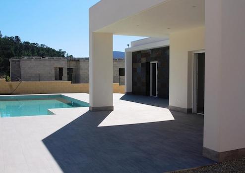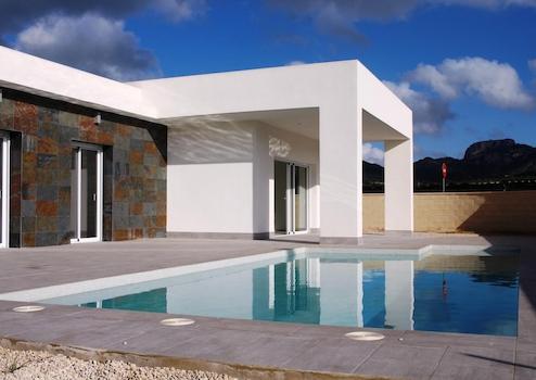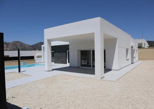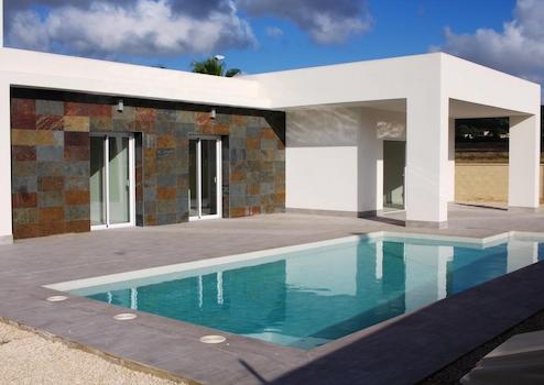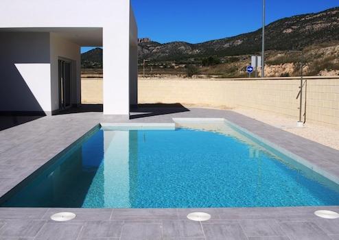 Diese moderne Villa vereint Komfort, Stil und mediterrane Lebensqualität auf höchstem Niveau. Auf einem eigenen, komplett eingezäunten Grundstück gelegen, bietet sie drei Schlafzimmer, zwei Badezimmer, einen privaten Swimmingpool und einen Parkplatz. Zwei der Schlafzimmer verfügen über praktische Einbauschränke, das Hauptbadezimmer ist en-suite, während der großzügige Wohn- und Essbereich sowie die Küche mit Hauswirtschaftsraum für Wohlbefinden und Alltagstauglichkeit sorgen.