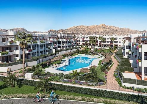 Die Appartement-Anlage befindet sich an der südspanischen Küste von Almería nur 500 m entfernt vom Strand Playa La Entrevista. Es handelt sich um eine Urbanisation, die großzügige Anlagen bietet, darunter wunderschöne Gärten und Plätze mit einer großen Poolanlage für Erwachsene und Kinder sowie beheizten Whirlpools. Die Gemeinschaft verfügt über WIFI. Die großzügigen Gemeinschaftsbereiche verfügen außerdem über einen Kinderspielbereich, und das alles innerhalb eines geschlossenen Sicherheitsbereichs.