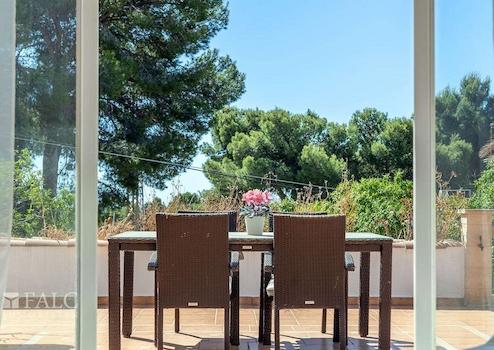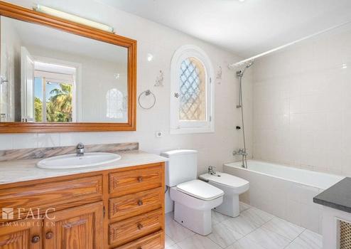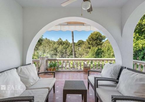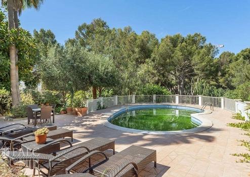 Diese bezaubernde, mediterrane Villa in Costa d´en Blanes bietet einen tollen Waldblick und befindet sich in einer privilegierten Wohngegend, nur wenige Autominuten vom exklusiven Yachthafen Puerto Portals und den hübschen Stränden mit türkisfarbenem Wasser entfernt, im Südwesten der Insel Mallorca. Das Objekt ist renovierungsbedürftig und hat eine bebaute Fläche von ca. 269 m2, die sich wie folgt aufteilen: ein gemütliches Wohn-/ Esszimmer mit Kamin und Zugang zur Terrasse, eine möblierte und ausgestattete Küche, 5 Schlafzimmer mit Einbauschränken, 3 Badezimmer, sowie ein Abstellraum. Der charmante Aussenbereich mit einem üppigen Garten und einem fantastischen Pool lädt dazu ein, die magischen Tage und Nächte auf der herrlichen Insel Mallorca in vollen Zügen zu geniessen. Zu den Ausstattungsmerkmalen dieser fabelhaften Villa in Costa d´en Blanes zählen: Klimaanlage, Zentralheizung, Kamin und Keramikböden. Zur Verfügung stehen 2 Parkplätze in der Garage und einige Stellplätze im Freien. Es handelt sich um eine attraktive Lage, nur wenige Autominuten vom exklusiven Yachthafen Puerto Portals mit seinen hervorragenden Restaurants und Boutiquen entfernt. Zum nächsten Golfplatz in Bendinat sind es 5 Autominuten.