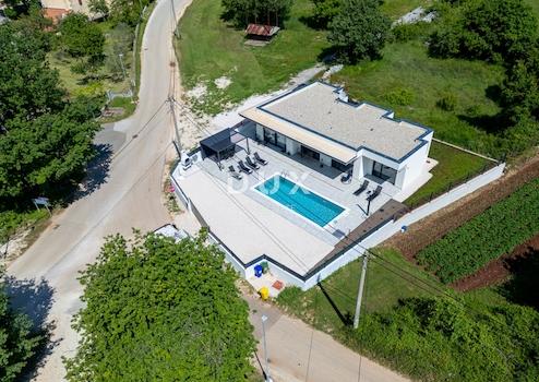 In einer ruhigen, grünen Gegend Istriens, in unmittelbarer Nähe von Kanfanar, steht ein modernes und elegantes Bungalow mit Pool zum Verkauf. Das Haus ist komplett möbliert und sofort bezugsfertig oder kann weiterhin als Ferienimmobilie vermietet werden. Die Immobilie ist für die Vermietung zugelassen und generiert bereits nachweisbare Einnahmen und hervorragende Bewertungen, was sie zu einer äußerst attraktiven Investition macht.