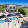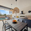 Das Erdgeschoss umfasst zwei komfortable Schlafzimmer, zwei Badezimmer, einen Technikraum, eine Waschküche und ein Gäste WC. Ein Schlafzimmer hat direkten Zugang zu einer überdachten Terrasse mit Blick auf den Pool. Eine große Sommerküche von 41 m² bietet den idealen Rahmen für Mahlzeiten im Freien und entspannte Momente mit Familie und Freunden.