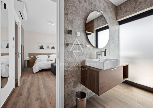 Die oberste Etage umfasst zwei geräumige Schlafzimmer, jeweils mit eigenem Bad, sowie eine private Terrasse mit Panoramablick auf die Küste. Die erhöhte Lage sorgt für viel natürliches Licht und Privatsphäre.
