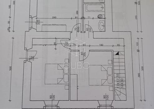 Im Erdgeschoss befinden sich das Wohnzimmer mit Essbereich, das als zentraler Raum für den Alltag und gemeinsame Momente gestaltet wurde. Die Küche ist durch einige dezente Stufen abgesetzt, was dem Innenraum zusätzliche Dynamik und architektonischen Charme verleiht, während der separate Eingang zur Küche den Alltag praktischer i funkcionaler macht. Auf derselben Etage befinden sich außerdem ein Schlafzimmer und ein Badezimmer.