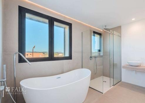 Im Erdgeschoss (Wohnfläche von ca. 150 m2 + Terrassen und Veranden) finden wir einen Eingangsbereich, 1 Doppelschlafzimmer mit Bad en suite, ein Gäste-WC, ein Badezimmer, Wohnzimmer mit Kamin, Esszimmer, Küche, Lagerraum, Hauswirtschaftsraum, Technikraum. Die Fläche des Obergeschosses beträgt ca. 102 m2. Es gibt 2 große Terrassen, um das mallorquinische Klima zu genießen, 3 Schlafzimmer, 1 Ankleidezimmer, 1 Gäste-WC, 1 Badezimmer mit Badewanne.