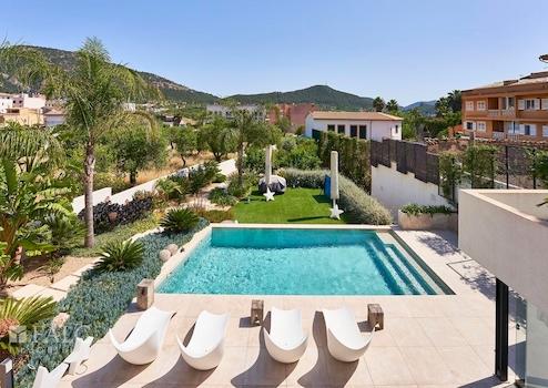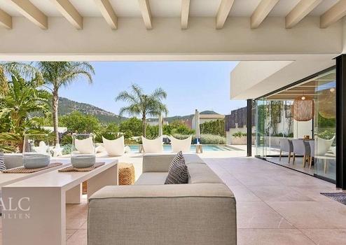 Diese beeindruckende Designer-Villa in Andratx mit Bergblick liegt im Herzen dieses traditionellen mallorquinischen Dorfes, nur wenige Kilometer vom berühmten Naturhafen Puerto Andratx und dem bekannten Golfplatz von Andratx in Camp de Mar entfernt.