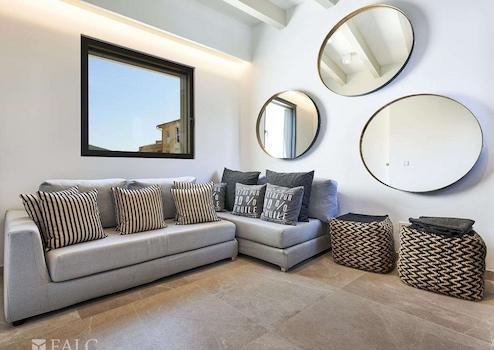 Die luxuriöse Neubau-Immobilie bietet einen wunderschönen Salzwasserpool und einen gemütlichen mediterranen Garten, ideal zum Entspannen und Genießen des angenehmen Inselklimas. Ein moderner Innenhof empfängt Sie beim Betreten dieser außergewöhnlichen Villa, die über eine bebaute Fläche von ca. 348 m² verfügt.