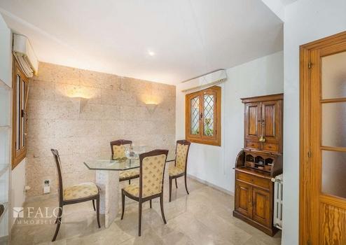 Dieses lichtdurchflutete Reihenhaus in Can Pastilla befindet sich in einer ruhigen Wohngegend, nur wenige Minuten zu Fuss von einem schönen Strand mit kristallklarem Wasser entfernt. Die attraktive, renovierte Immobilie verfügt über eine bebaute Fläche von ca. 186 m2, die wie folgt auf 3 Etagen verteilt sind: das Erdgeschoss bietet ein helles Wohnzimmer mit Kamin, eine möblierte und ausgestattete Küche, eine Toilette, sowie eine Terrasse. Im ersten Stock befinden sich 3 Schlafzimmer und 2 Badezimmer, das Hauptschlafzimmer hat Zugang zu einer Terrasse. Die zweite Etage besteht aus einem weiteren Zimmer, einem Abstellraum und einer weiteren Terrasse. Zu den Ausstattungsmerkmalen dieses tollen Reihenhauses in Can Pastilla zählen: Klimaanlage, Zentralheizung, ein Kamin, doppelt verglaste Climalit-Fenster und Marmorböden. Es gibt eine geräumige Garage mit Platz für 2 Autos und einem Ladegerät für Elektroautos. Die Immobilie bietet eine attraktive Lage, nur wenige Schritte vom Meer, dem Strand und etwa 20 Autominuten vom Zentrum Palmas entfernt.