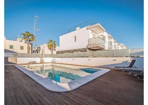 Es handelt sich um ein Endreihenhaus, das von einer großen privaten Terrasse umgeben ist. In der Wohnanlage steht ein Gemeinschaftspool zur Verfügung. Alle Möbel und Haushaltsgeräte sind im Preis inbegriffen (mit Ausnahme des Sofas im Hauptwohnzimmer und der Lampen). Diese Immobilie wurde unter Verwendung hochwertiger Materialien gebaut und eignet sich daher hervorragend als Dauerwohnsitz. Hochwertige, doppelt verglaste Fenster sorgen das ganze Jahr über für eine angenehme Temperatur im Haus, ohne dass eine Heizung oder Klimaanlage benötigt wird. Eine zentrale Klimaanlage ist im Haus vorinstalliert. Darüber hinaus gibt es motorisierte Rollläden an den Fenstern und ein automatisches Garagentor.
