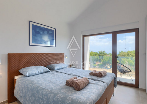 In einer ruhigen Siedlung nahe Krnica gelegen, vereint diese neu gebaute Villa modernes Design mit mediterranem Charme und bietet ein ideales Refugium für alle, die Komfort in Meeresnähe suchen. Der Innenbereich erstreckt sich über 100 m² auf zwei Ebenen und umfasst ein helles Erdgeschoss mit offenem Grundriss, in dem Wohnzimmer, Essbereich und voll ausgestattete Küche harmonisch ineinander übergehen. Große Schiebetüren aus Glas durchfluten den Raum mit Tageslicht und führen direkt auf die Terrasse.