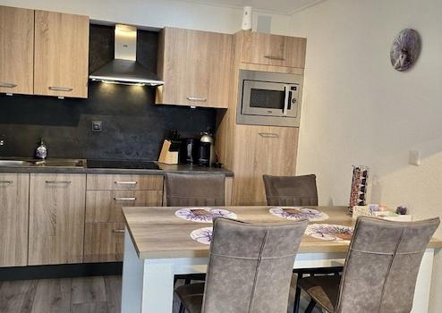 Die Küche wurde kürzlich erneuert und präsentiert sich in einem modernen, zeitgemäßen Design mit einer hellen und hochwertigen Ausführung. Sie verbindet Komfort und Funktionalität und bietet alles, was Sie für den Alltag oder gesellige Kochabende benötigen.