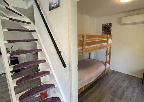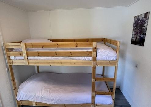 Schlafzimmer 3 ist ein praktisches und gemütliches Zimmer, ideal für Kinder, Gäste oder zusätzliche Schlafplätze. Das stabile Etagenbett nutzt den Raum optimal aus und bietet komfortable Schlafmöglichkeiten.