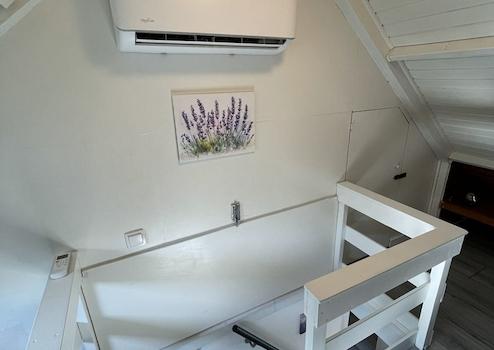 Das Zimmer verfügt über ein komfortables Doppel-Boxspringbett mit neuen Matratzen und einem neuen Topper, das optimalen Schlafkomfort garantiert. Zusätzlich ist eine Klimaanlage vorhanden, die sowohl kühlen als auch heizen kann – so genießen Sie das ganze Jahr über die perfekte Temperatur, im Sommer angenehm kühl und im Winter wohlig warm.